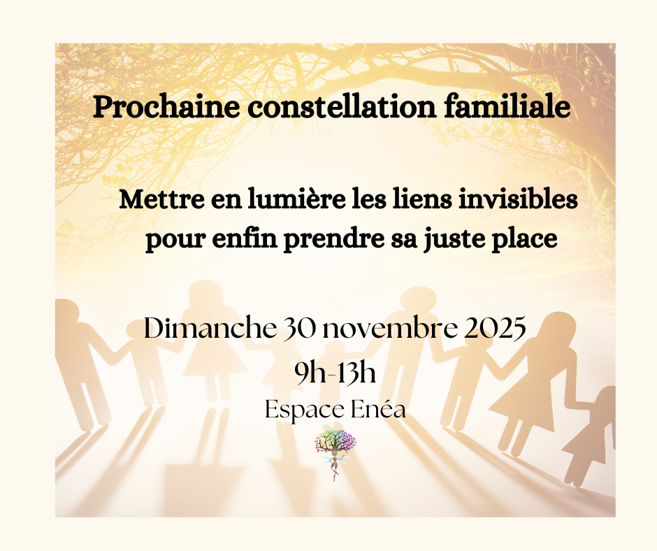 Un atelier d’astro-constellation familiale et systèmique se tiendra le 23 novembre, de 14h à 18h. Sur l’après-midi, 2 personnes pourront être constellées. Venez vivre une expérience transformative et profonde dans un cadre bienveillant.