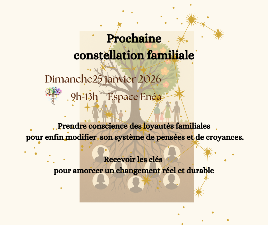 Un atelier d’astro-constellation familiale et systèmique se tiendra le 23 novembre, de 14h à 18h. Sur l’après-midi, 2 personnes pourront être constellées. Venez vivre une expérience transformative et profonde dans un cadre bienveillant.